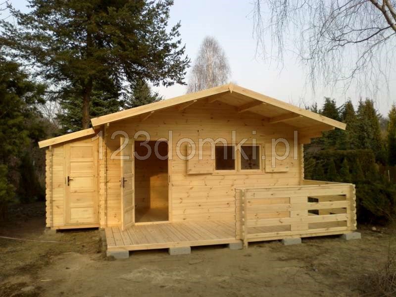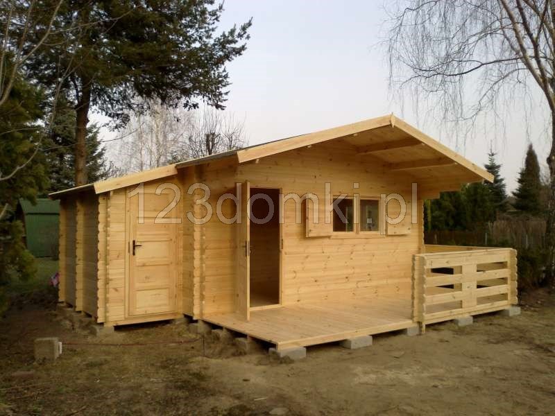 – domek drewniany na działki Standard-54: wymiary 5x4m (480x380cm) + taras 5x… + komórka (narzędziownia)