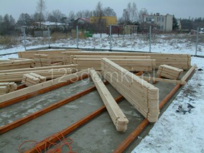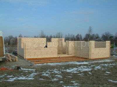 Domek letniskowy o wymiarach 8x7m wykonany z SUSZONEGO komorowo, struganego balika sosnowego, łączonego na podwójne pióro – wpust.