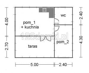 – rozkład pomieszczeń : salon-kuchnia , łazienka pokój