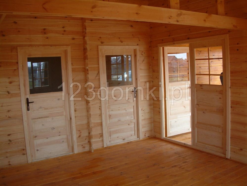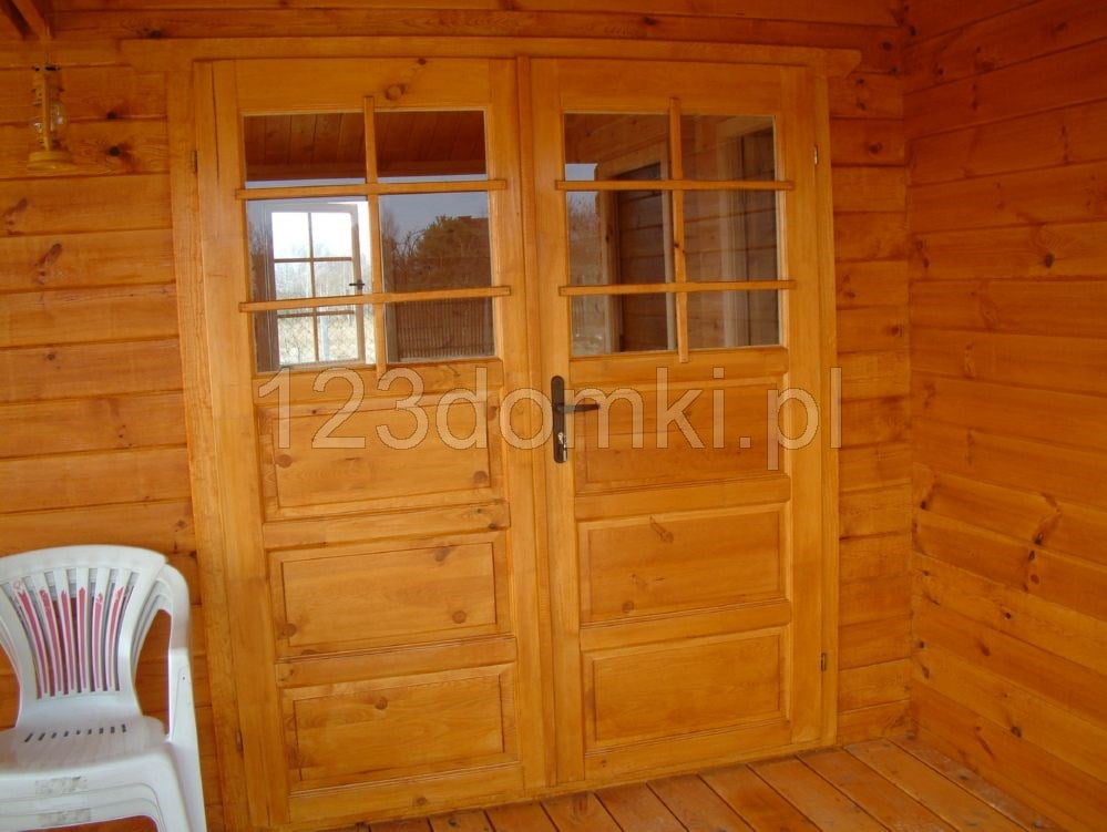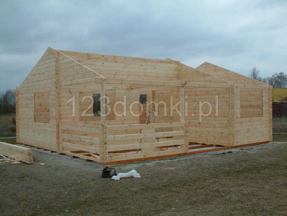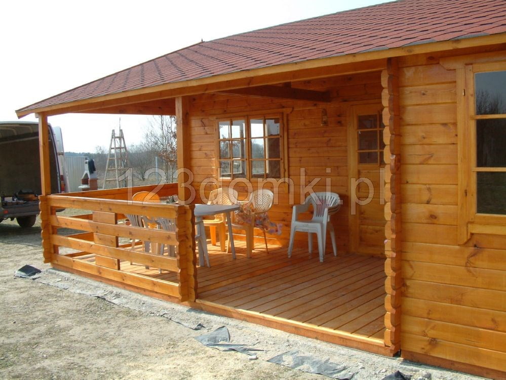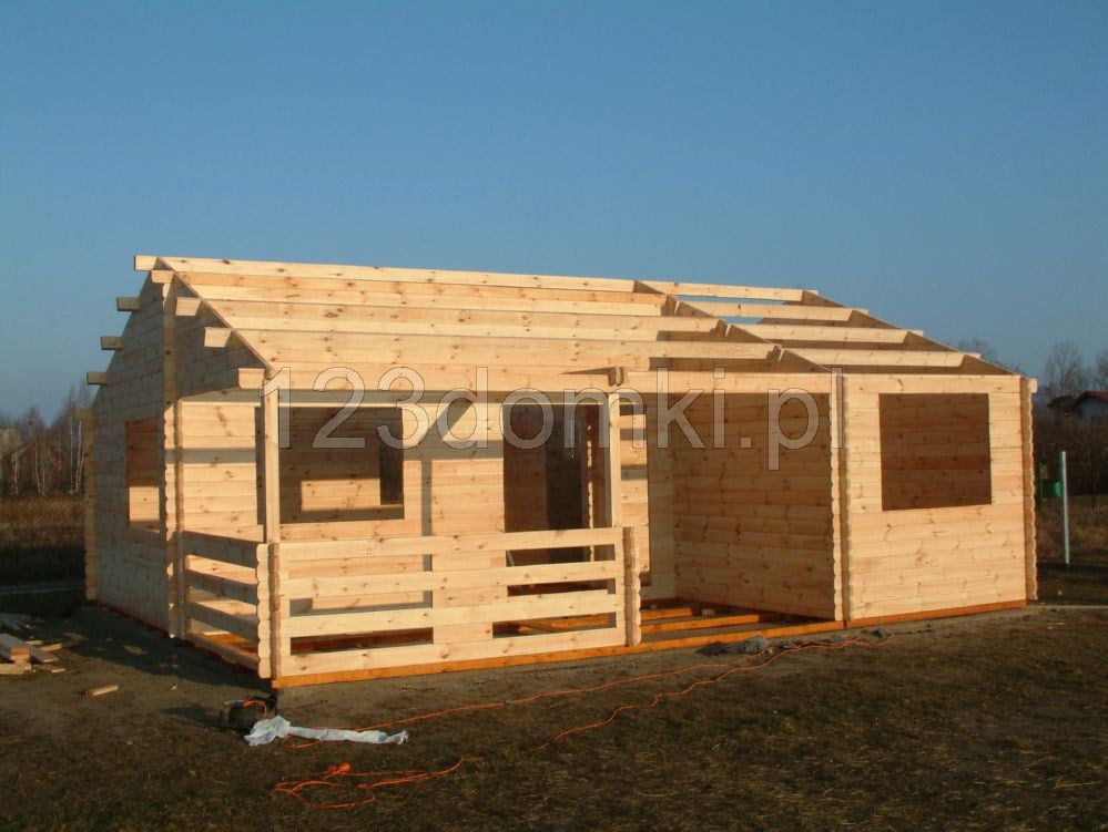 Domek letniskowy o wymiarach 8x7m wykonany z SUSZONEGO komorowo, struganego balika sosnowego, łączonego na podwójne pióro – wpust.