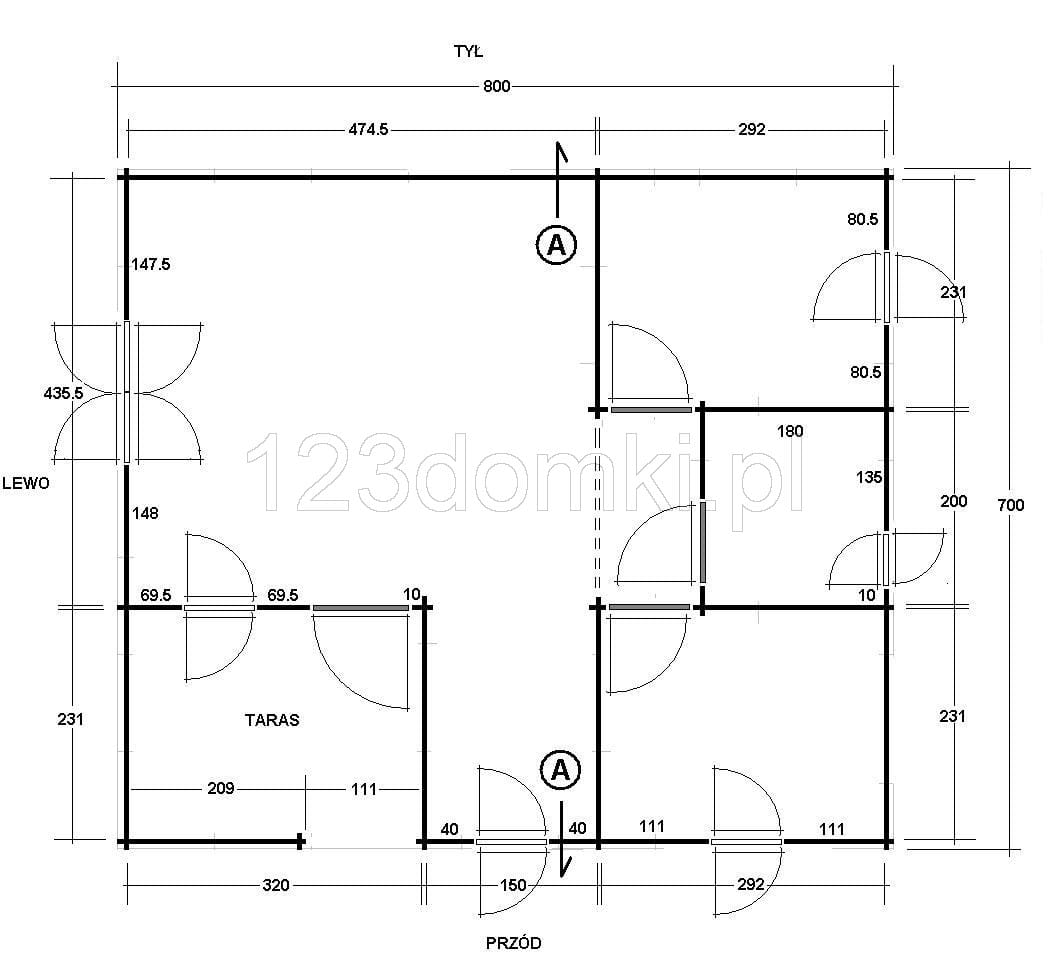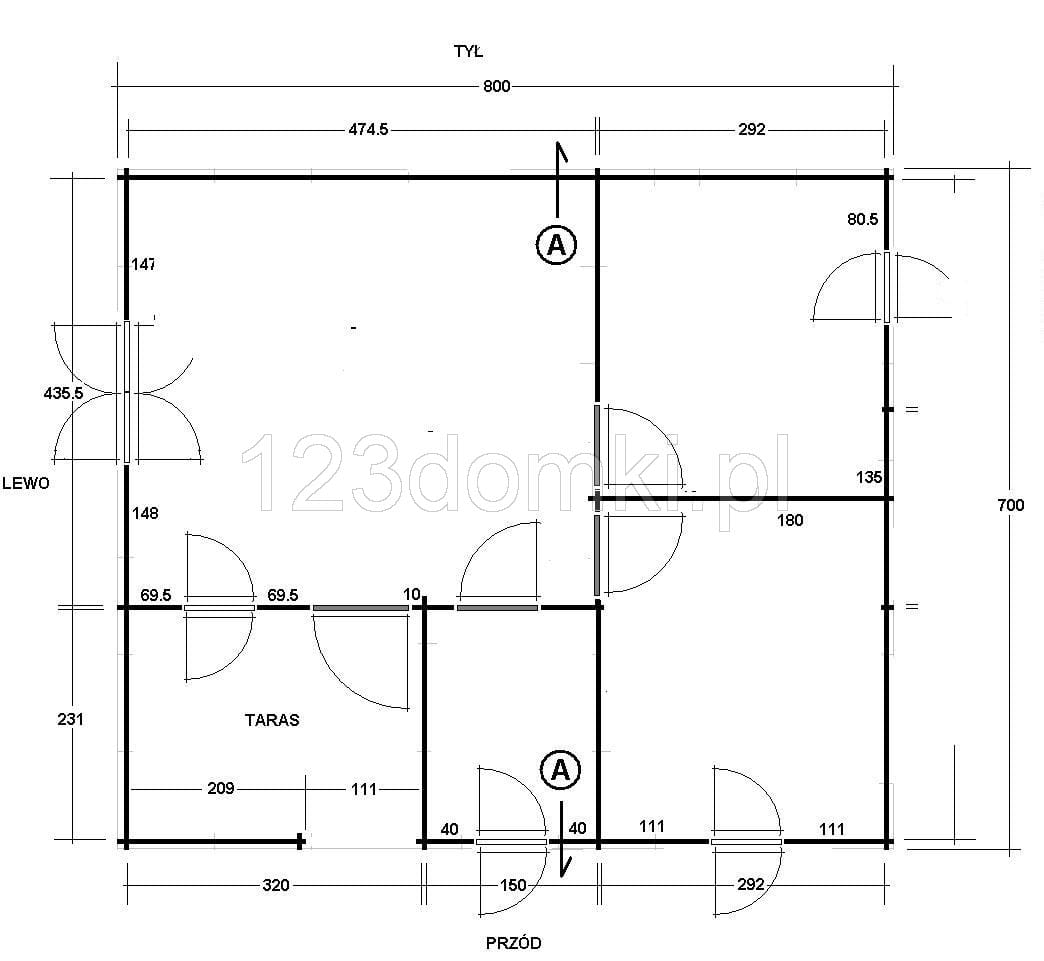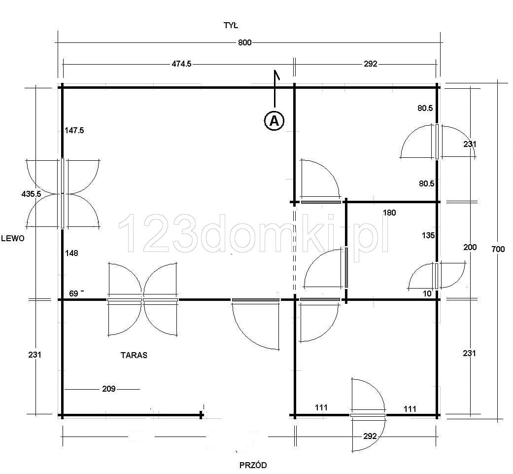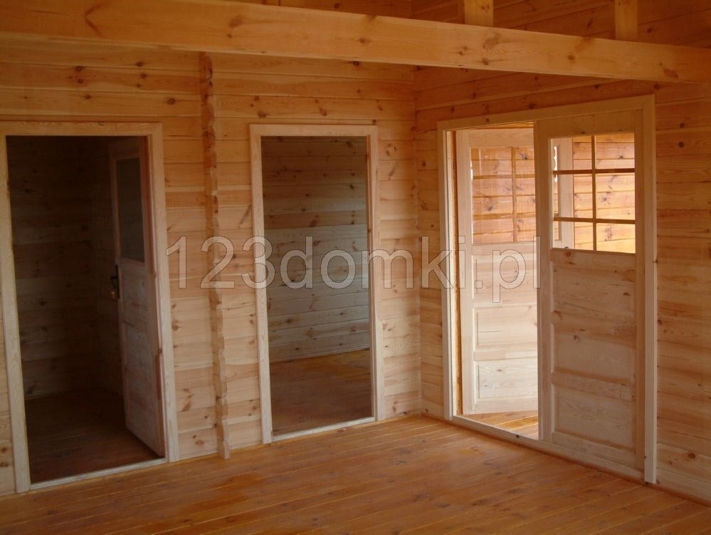 Domek letniskowy o wymiarach 8x7m wykonany z SUSZONEGO komorowo, struganego balika sosnowego, łączonego na podwójne pióro – wpust.