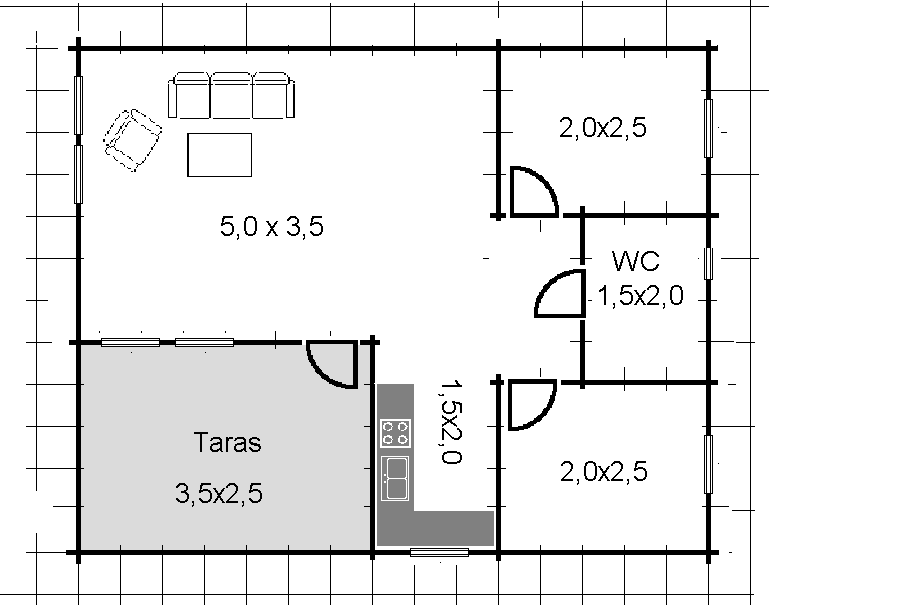 Proszę wycenę domku letniskowego 35m2 plus taras 14m2