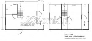 Drewniany domek letniskowy o wymiarach 6×5 m z możliwością zwiększenia lub zmniejszenia powierzchni. Powierzchnia parteru 30m2, poddasze 30m2. Dom letniskowy z poddaszem użytkowym 30m2 (domek piętrowy). Domek można spróbować w uzasadnionych przypadkach zgłosić jako domek z poddaszem nieużytkowym (domek parterowy z poddaszem nieużytkowym)