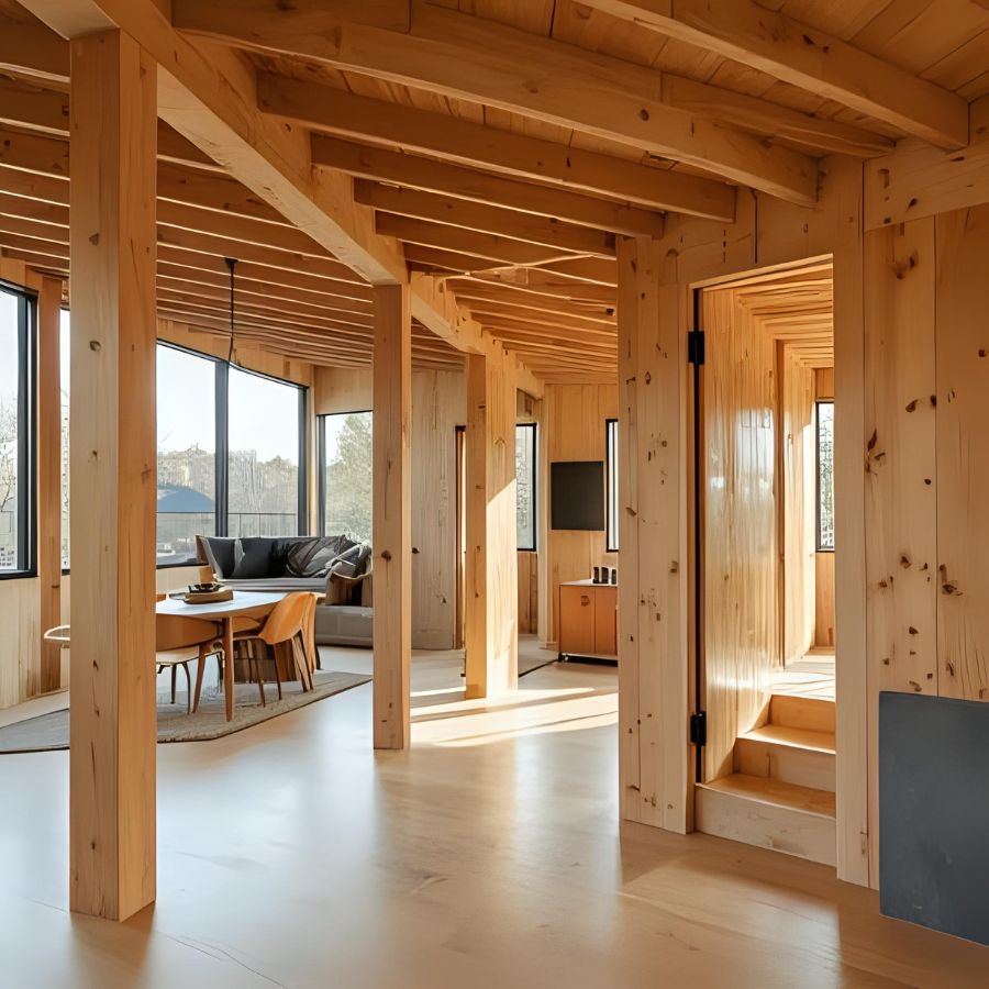 Przy dobrym projekcie drewno nie stanowi problemu, a wręcz działa jako naturalny regulator wilgotności i ciepła.