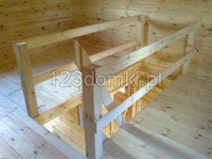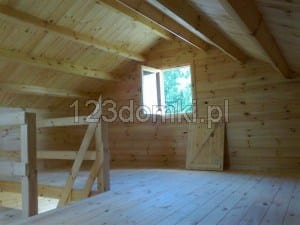 Podłoga: gruba deska podłogowa 28mm na legarach drewnianych impregnowanych, wykonana z desek struganych czterostronnie, łączonych na pióro-wpust. Rozstaw legarów pod podłogą domku jest dobrany w taki sposób, aby podłoga nie uginała się pod ciężarem osób oraz mebli.