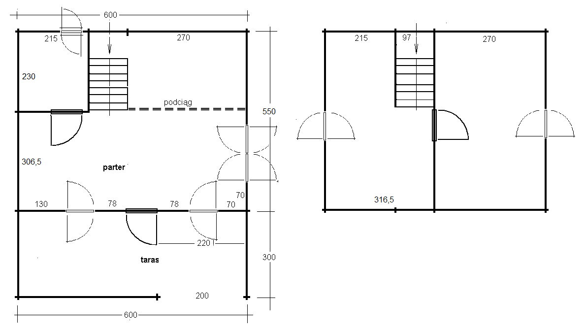 – domek na ogródkach działkowych powiększony do wymiaru 600x550cm 33-35m2 (zamiast 600x500cm 30m2)