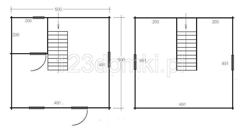 Mazowieckie-55 to drewniany dom o wymiarach 5x5m i powierzchni zabudowy 25m2, dzięki czemu uzyskaliśmy możliwość wybudowania jako budynek gospodarczy na zgłoszenie prawie w każdym miejscu (domki bez pozwolenia na budowę). Dom letniskowy piętrowy posiada powierzchnię całkowitą 50m2, bo praktycznie cała powierzchnia poddasza jest do wykorzystania (wysoka ścianka kolankowa – patrz niżej).