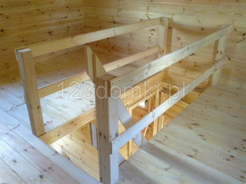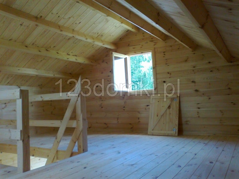 Poddasze domku drewnianego jest pełne (nad całą powierzchnią parteru) i otwarte, bo bez wydzielonych ścian, dzięki czemu uzyskujemy dużą przestrzeń, przestronność i wygodę użytkowania domku. Wydzielenie ścian z drzwiami to opcja płatna, ale dzięki niej powstaną na poddaszu domku drewnianego nawet dwie niezależne sypialnie, dające poczucie prywatności wszystkim użytkownikom budynku. Oczywiście jest też możliwe wybudowanie domku piętrowego z 1 sypialnią.