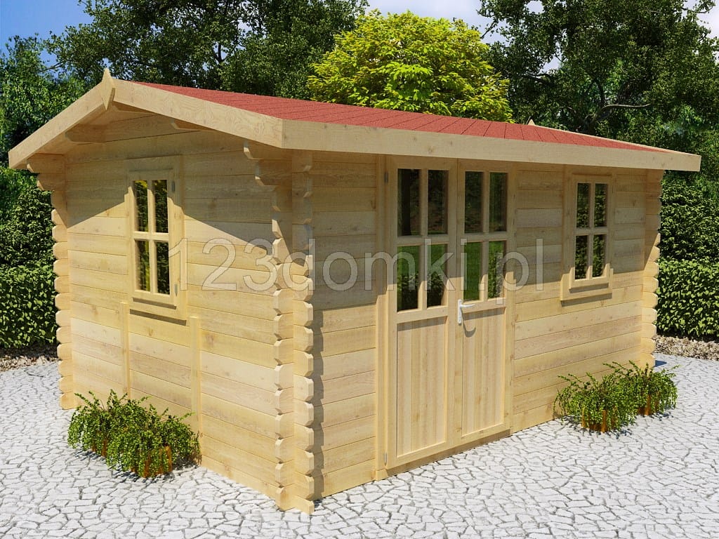Domek ogrodowy/działkowy o wymiarach 400×300cm lub 500x400cm (inne wymiary na życzenie) wykonany z suszonego komorowo, struganego balika sosnowego, łączonego na pióro-wpust.